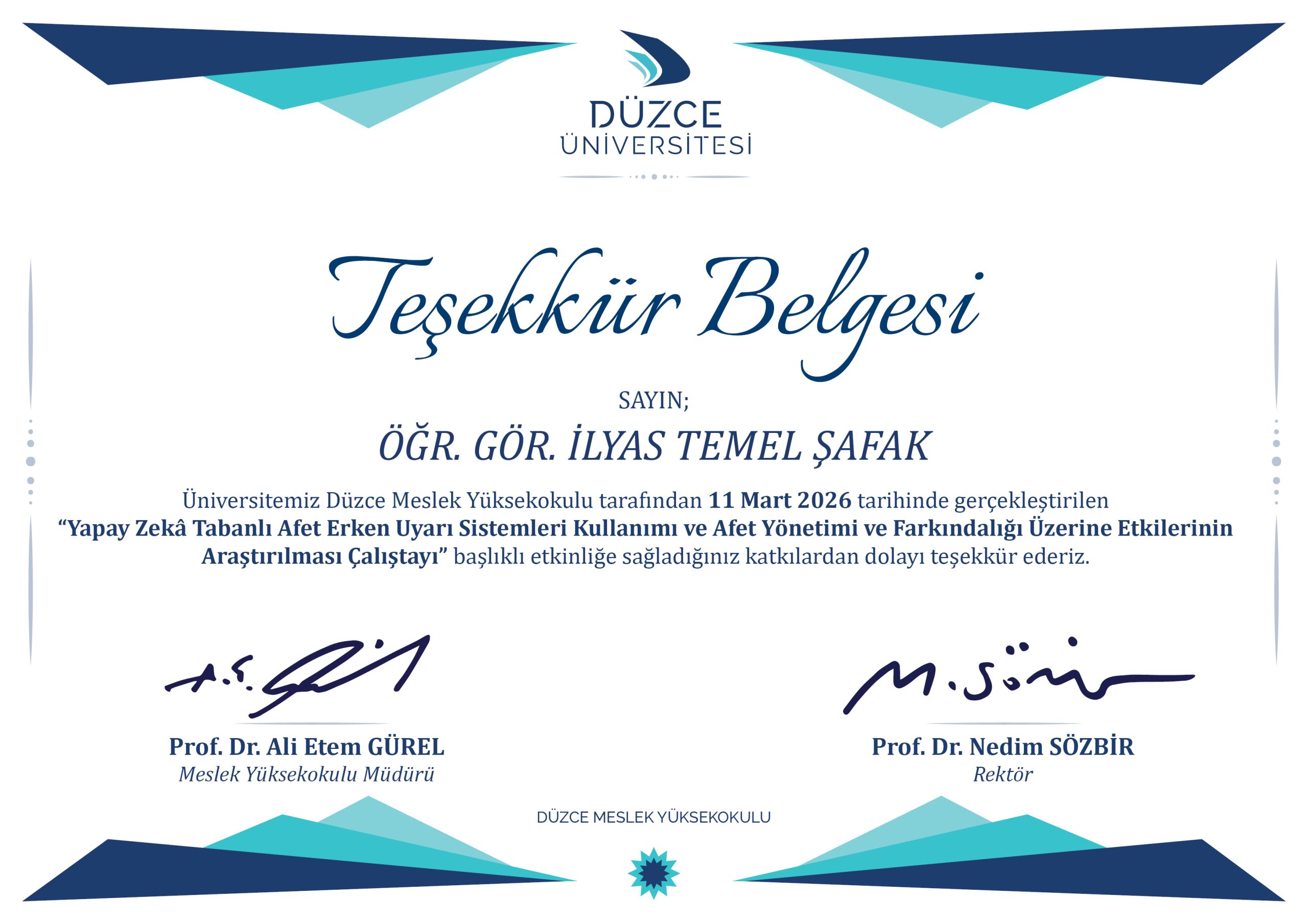 ▪️ Düzce Meslek Yüksekokulu tarafından 11 Mart’ta düzenlenen “Yapay Zekâ Tabanlı Afet Erken Uyarı Sistemleri…