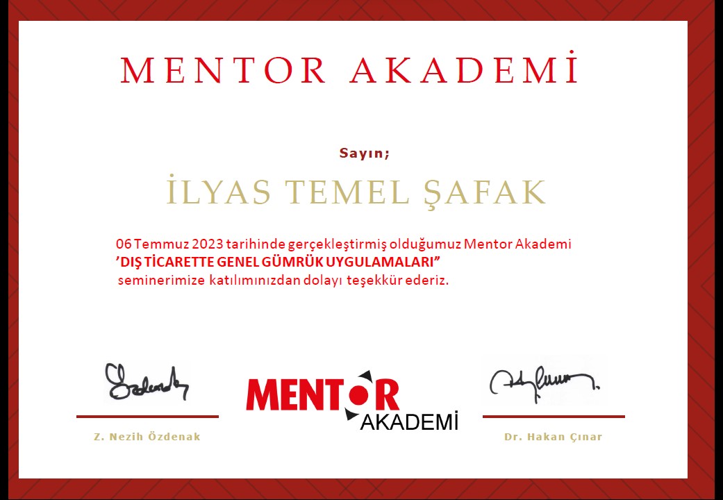 > Mentor Gümrük Müşavirliği Akademisi tarafından düzenlenen ve Dr. Hakan Çınar tarafından verilen "Dış Ticarette Genel Gümrük Uygulamaları" seminerinde bilgilerimizi…